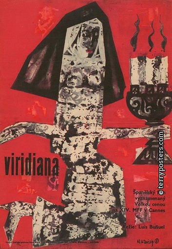 Not many Spanish films were released for cinema distribution in the former Czechoslovakia until 1989. There were definitely many more French or Italian films released. However, some of the Spanish films were accompanied by great original film posters, for example Zdeněk Ziegler made posters for the films Weeping for a Bandit and The Regent´s Wife . Olga Poláčková-Vyleťalová designed a poster for Buňuel’s classic piece, Tristana , and Machálek designed a wonderful poster for the film, Chimes at Midnight.