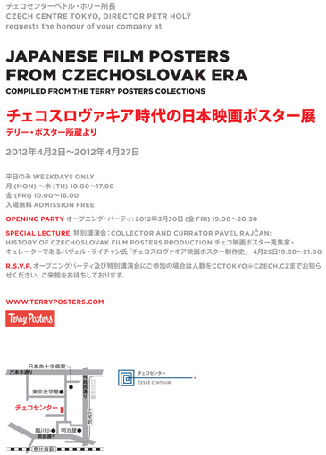 Second show of Terry posters collection in Japan introduce movie posters for japanese movie , created by leading czechoslovak artists between years 1959 and 1976. This exhibition was created with cooperation with Czech centre in Tokyo