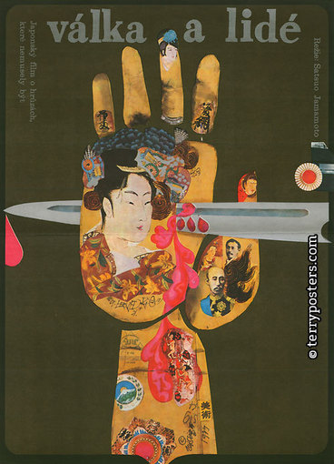 The collection of czechoslovak posters for japanese movies feature 36 posters, which were created from 1959 through 1976. Contains posters for japanese catastrophic sci-fi movie, which were considerable part of czechoslovak movie distribution and they were very popular (Gappa, Gamera vs. Giger, The X from Outer Space, Godzilla vs. Monster Zero) as well as posters for classic movie by Akira Kurosawa (Throne of blood, Heaven and Hell, Rashomon, Derzu Uzala, Dodeska-den) or Masaki Kobayashi (Seppuku, Kwaidan, Rebellion, Hymn to a Tired Man). Extraordinary attention should be pay to poster made by Jan Kubicek for Akira Kurosawa movie Throne of Blood, which even created in 1959, stand out by modern form and design. Vaca´s poster for another Kurosawa movie Heaven and hell catch your eye with marvelous collage so typical for this artist. Karel Teissig poster The Song of Bwana Toshi has become an icon of czechoslovak movie poster, and supreme assemblage made by Bedrich Dlouhy for movie Rashomon is prove, what austere and temperate master poster language is capable of.